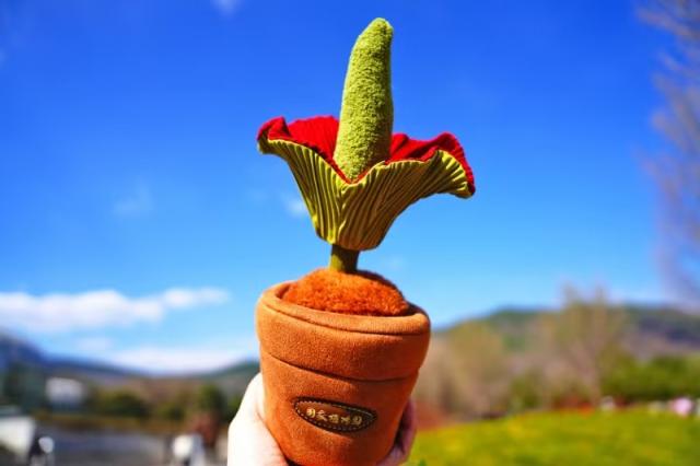 园内各类特色市集与文创新品同步上线,多款匠心好物缤纷亮相。以品霞桃为设计灵感的植物主题擦手巾,颜值与实用兼具,成为桃花节必入的文创佳品。园内人气热植变身的精美刺绣徽章,别致设计为日常装饰增添巧思。展览温室南侧的毛绒文创专卖店,以巨魔芋、千岁兰、杏黄兜兰等珍稀濒危植物为原型设计特色毛绒玩具,搭配毛绒花盆、毛绒水壶等周边配件,打造“种植”毛绒的独特体验。
