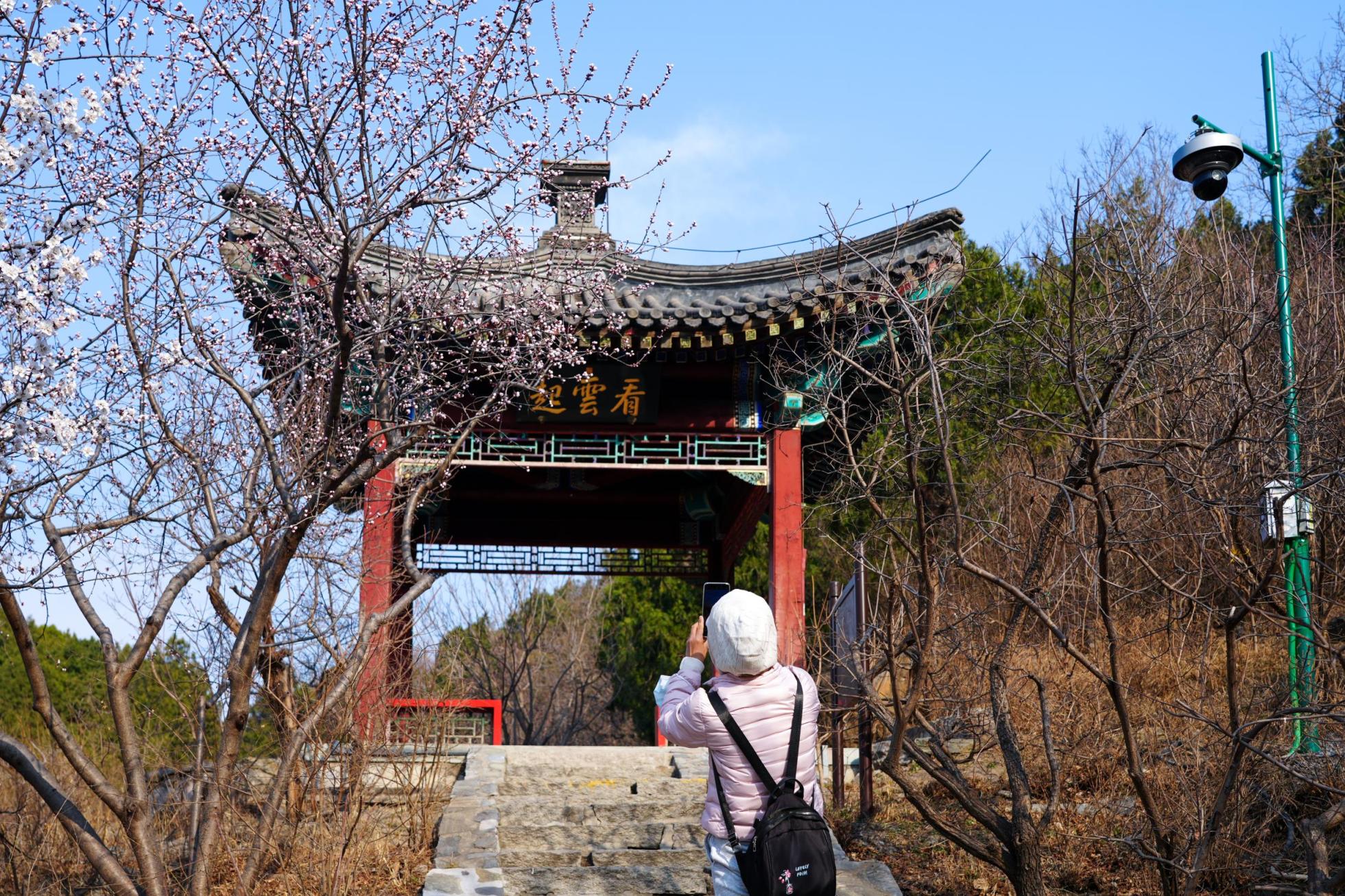 沿南路而行,游客可串联香山革命纪念地(八处革命旧址)进行红色研学之旅。途经青未了、看云起等古建景点,抬头即见山桃花与山杏花含苞待放。尤其是在香山寺后苑,登高远眺,古刹飞檐与烂漫春花交织,山间花海尽收眼底,是拍摄“一览众山小”大场景的绝佳机位。